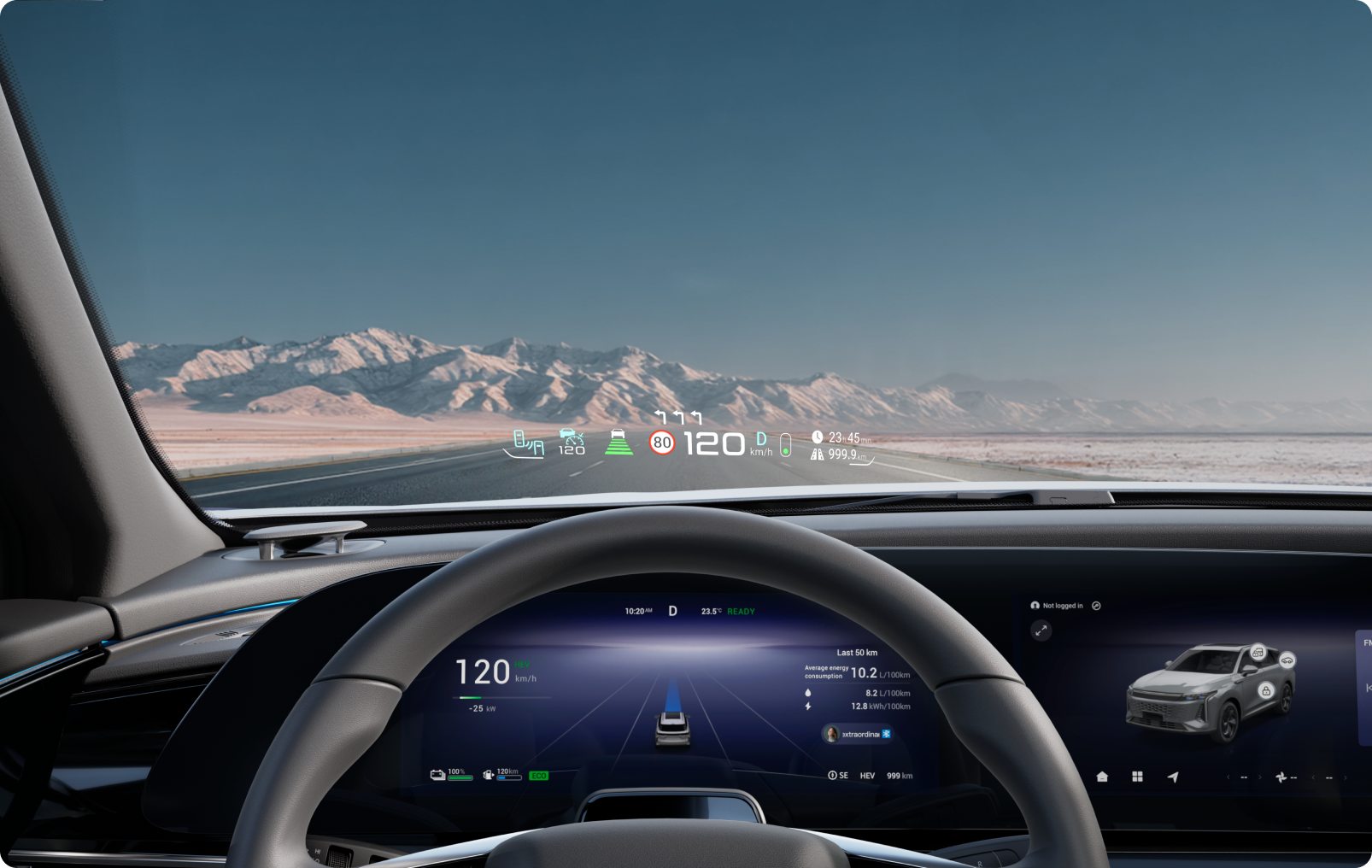 Fusion de la navigation, des informations ADAS et de la vue en direct : sans avoir à regarder vers le bas, vous pouvez voir les informations importantes sur le pare-brise, pour améliorer la sécurité de conduite.